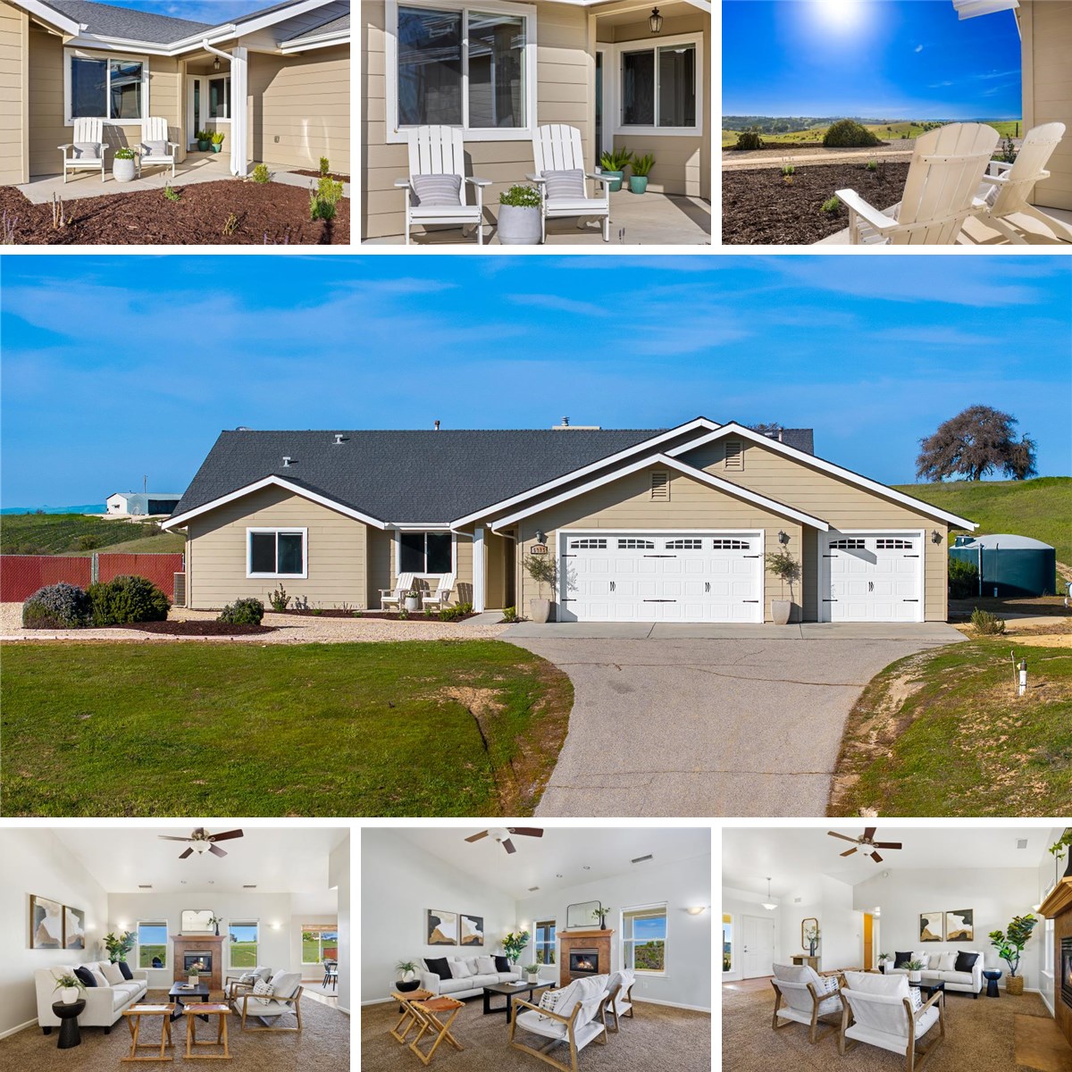 Set on a full acre in East Paso Robles, this custom-built ranch-style home captures wide-open views and a relaxed country setting. The single-level layout includes three bedrooms, two bathrooms, and a cozy den or office. Vaulted ceilings in the living room, den, and dining area create an open, airy feel throughout the main living spaces. It’s kitchen features granite countertops, ample cabinetry, a pantry, and opens directly to the dining area, with windows framing the surrounding hills. The living room is centered around a fireplace and filled with natural light. This primary suite offers two walk-in closets, patio access, and a private bath. Front and rear covered porches provide inviting spaces to enjoy incredible sunset views, rolling landscapes, and clear, star-filled Paso nights. A three-car garage adds generous room for vehicles, storage, or projects.